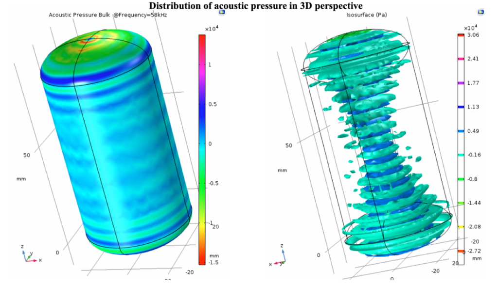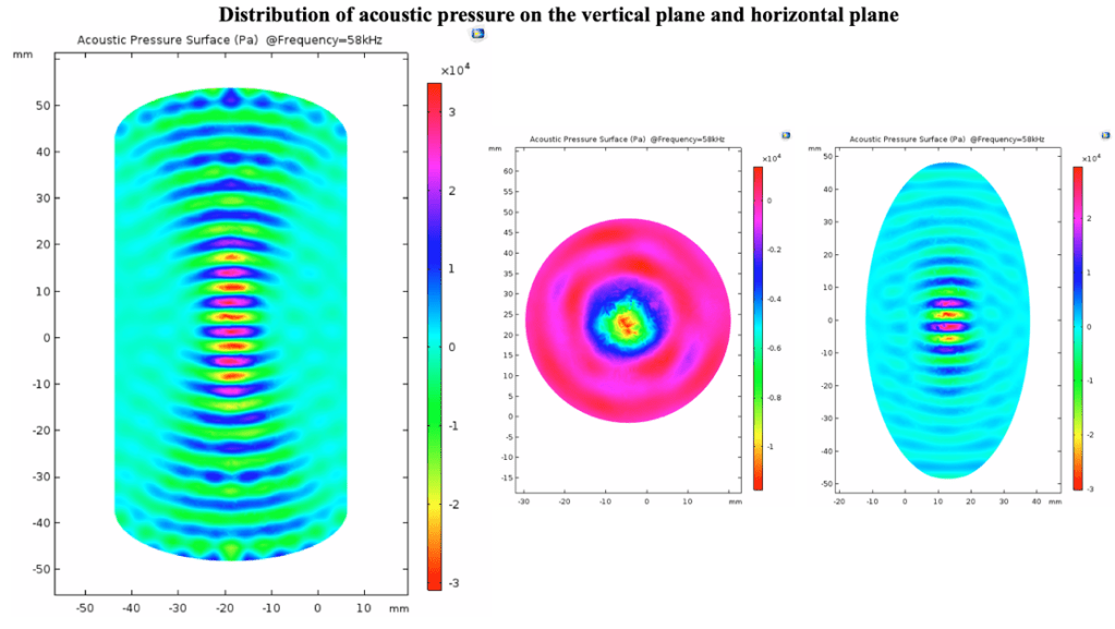 As shown in Table 2, when all the parameters are set as freely variable, the best acoustic pressure is achieved. This pressure is two orders of magnitude higher than the best pressure that can be achieved with only one variable parameter.
