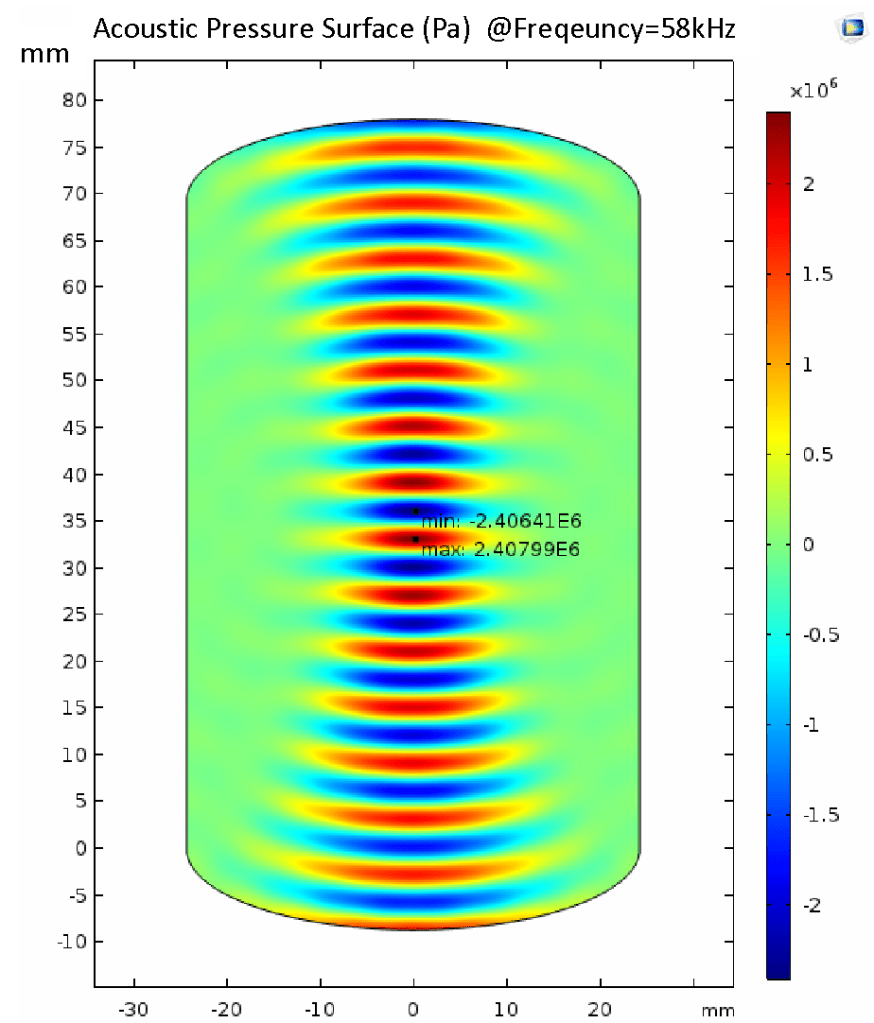 As reported by Zurch et al [1] and Michelson et al [2], the acoustic levitation capabilities are strongly dependent on the geometric parameters of the levitator. For reflectors with spherically concave surfaces, a larger section radius results in a greater ability to increase levitation force by choosing an appropriate curvature radius. Michelson et al [2] found that optimal levitation is achieved by applying a reflector with large section radius and small curvature radius with Rb/λ≥0.982. To test the effect of frequency change on the acoustic pressure, we defined the frequency Frequency=k×Rb, where k is a factor for the relationship between Rb and frequency.