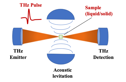 Due to the wall-less feature of acoustic levitation, the proposed method presents no substrate interaction for solid samples and no tube interaction for liquid samples. In addition, this device provides a platform for studying air-liquid interfaces by employing THz spectroscopy. In summary, acoustic levitation is a technique for spectroscopy with many promising potential applications, and optimization and easy, low-cost implementation of this technique will allow researchers to obtain improved spectroscopy results and perform novel experiments on air-liquid interfaces and phase transitions.
