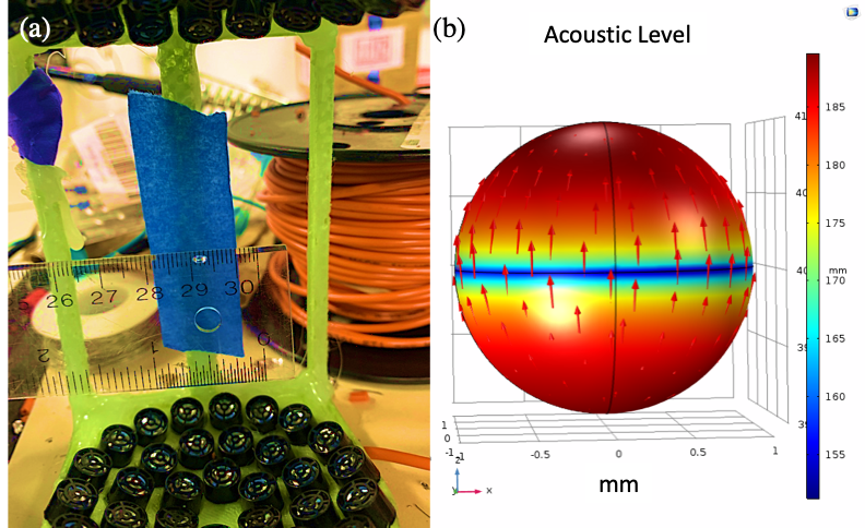 - Zang, Duyang, et al. “Acoustic levitation of soap bubbles in air: Beyond the half-wavelength limit of sound.” Applied Physics Letters 110.12(2017):121602.