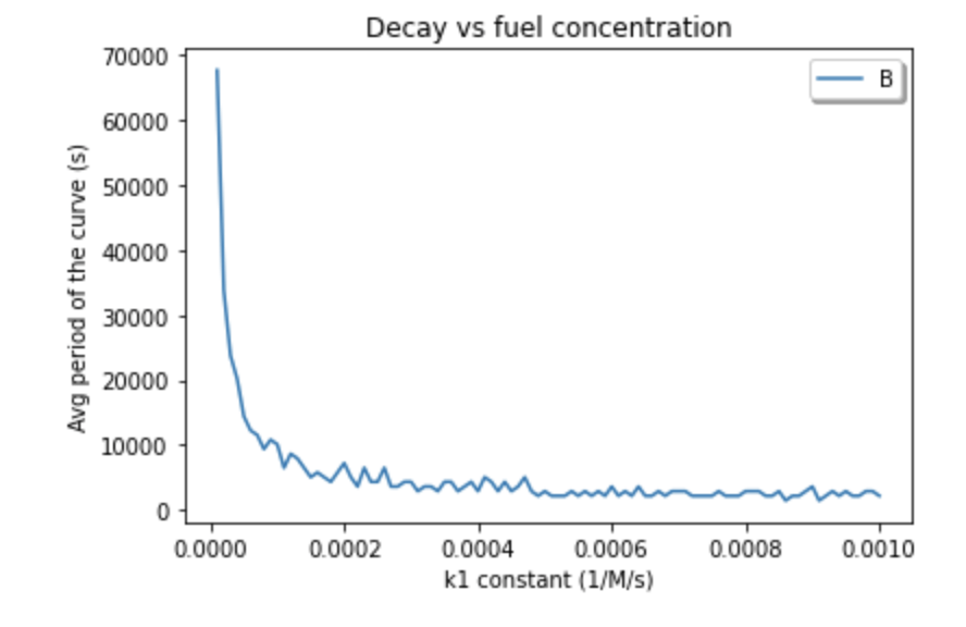 A single reaction module is dependent on 6 reaction rates. So, we needed to depict how the overall reaction rate changes based on its sub-rates. We noticed that for larger values of k1, the period of the overall RPS reaction became smaller (Figure 9).